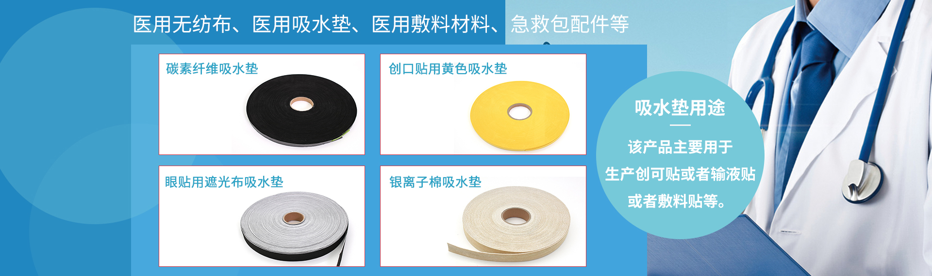 公司主要產品為醫(yī)用無紡布的延伸,如醫(yī)用無紡布,醫(yī)用吸水墊、醫(yī)用敷料、醫(yī)用石膏襯墊等一次性醫(yī)用耗材。